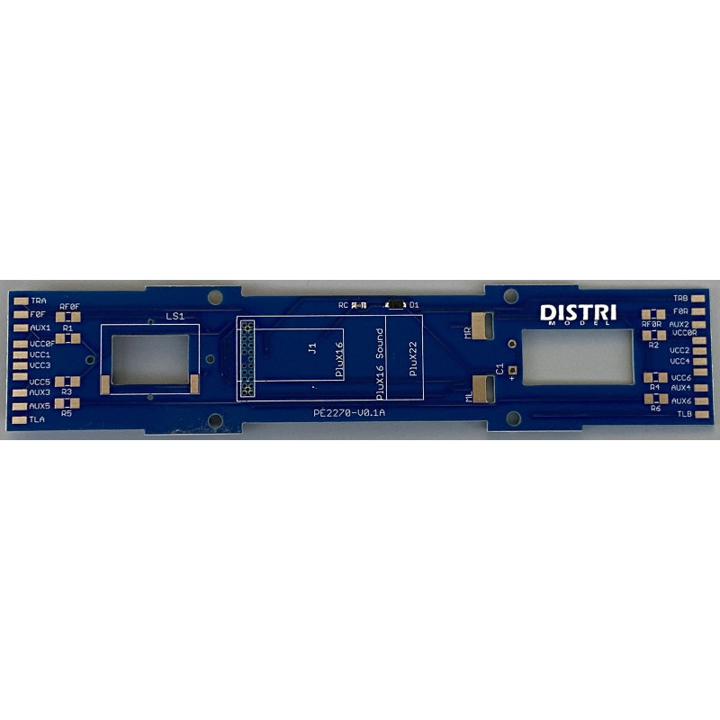 Cette platine équipée d'un décodeur PluX22 permet d'avoir 8 fonctions (F0F, F0R, AUX1, AUX2, AUX3, AUX4, AUX5, AUX6).